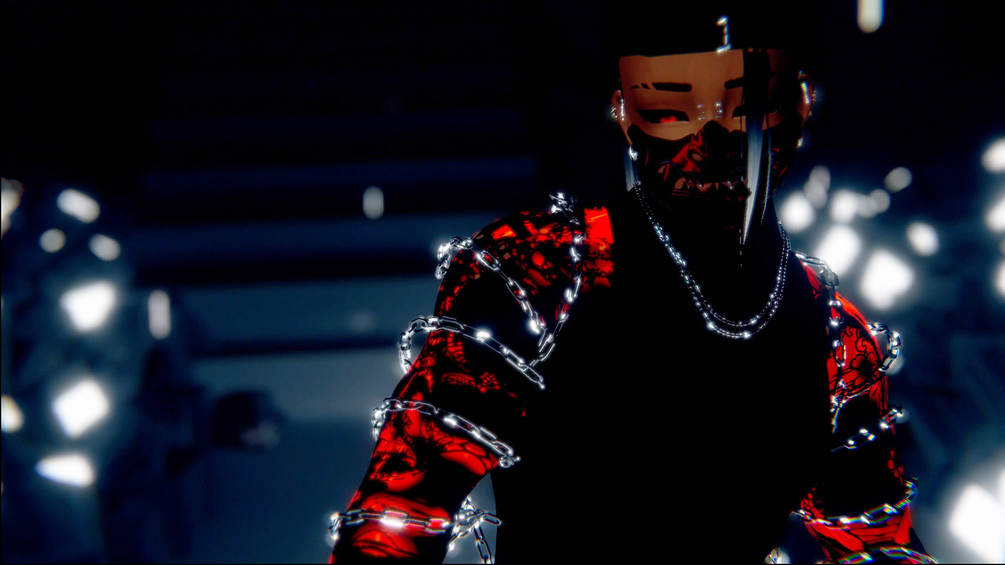 Hue shifts on the following: Short hair; Oni mask; tech pants; tattoos; eyes; dress shirt